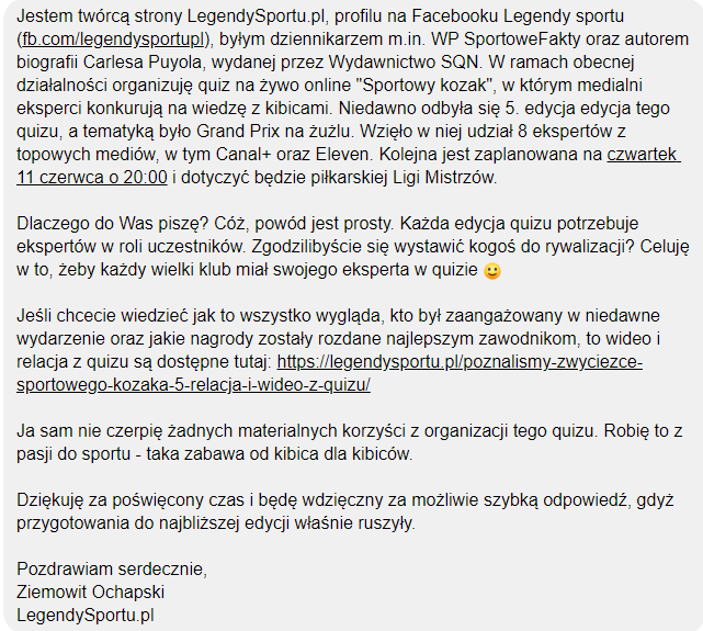 Dostaliśmy propozycję uczestnictwa w quizie dotyczącym LM. Ktoś chętny?